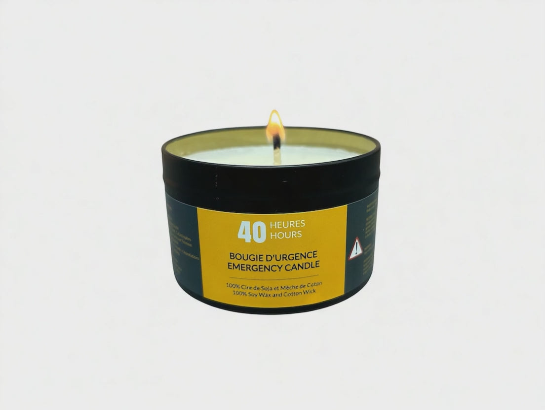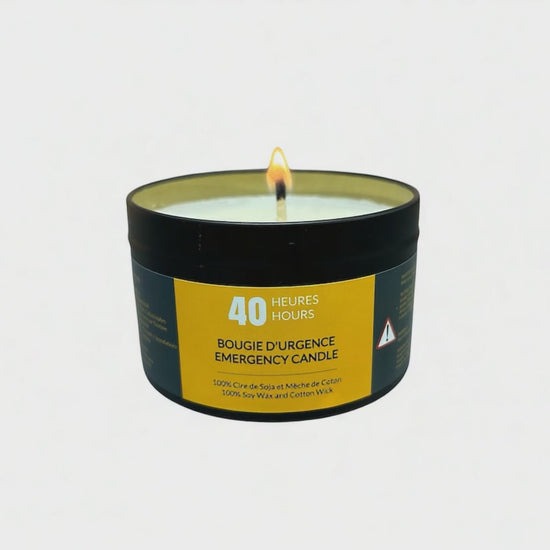 Soyez prêt en cas de pannes de courant imprévues et de catastrophes naturelles grâce à notre bougie d'urgence 40 heures - Boîte noire. Elle offre une combustion continue et sans fumée jusqu'à 40 heures, garantissant une lumière constante même en cas d'urgence prolongée.