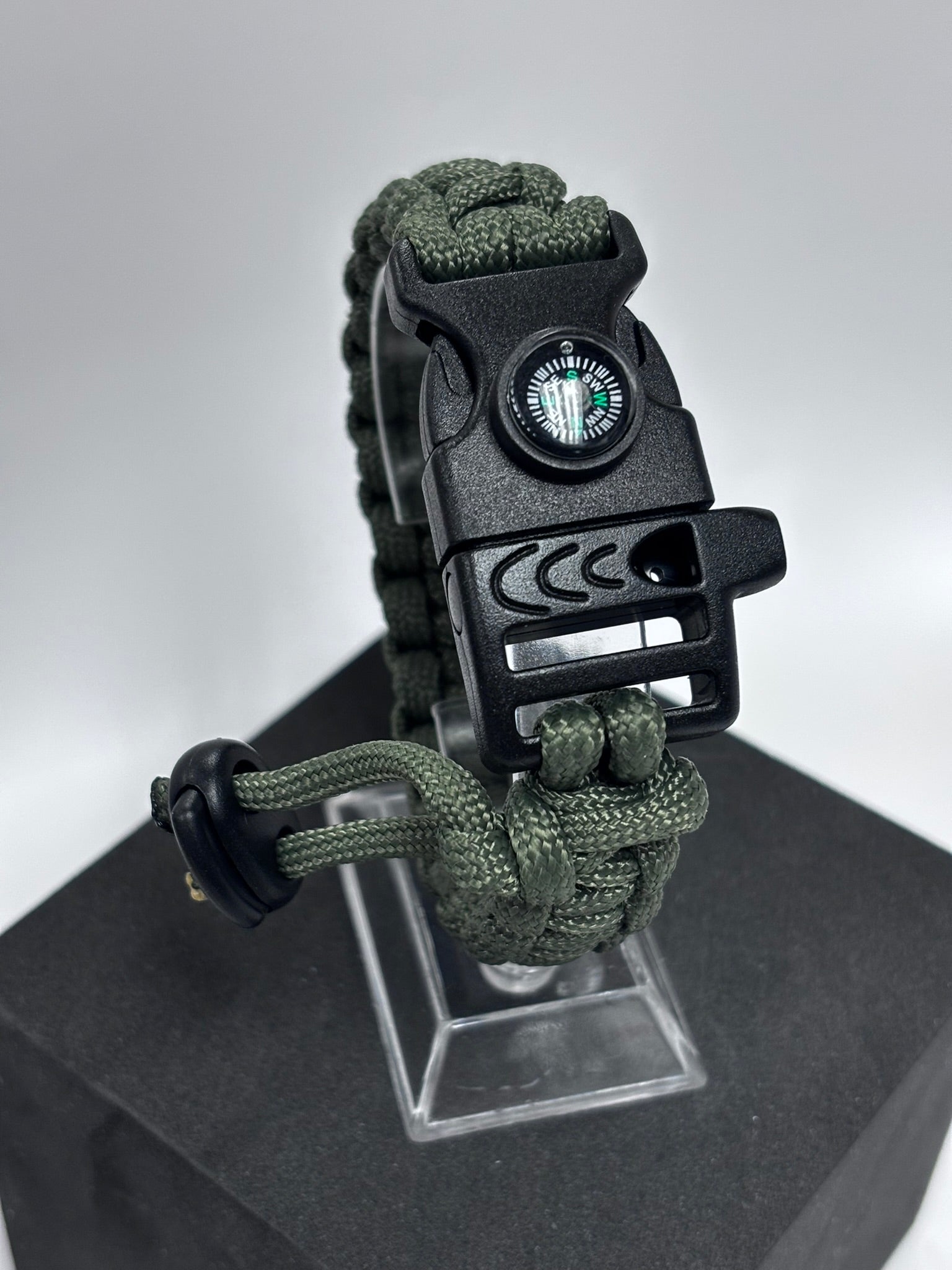 Bracelet de survie 3 en 1 en paracorde (vert armée)