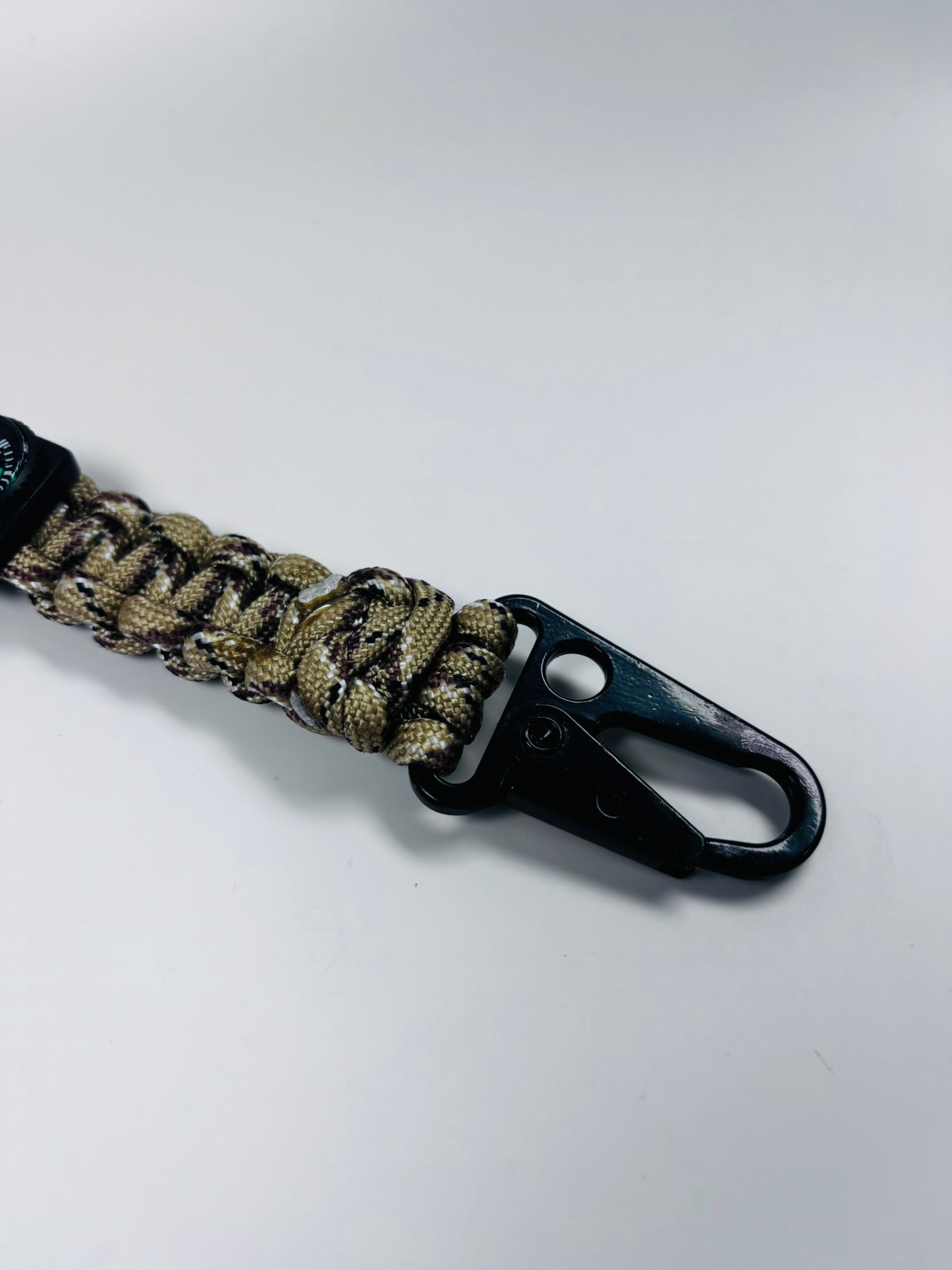 - Fermeture : Mousqueton tactique noir + anneau porte-clés rond noir