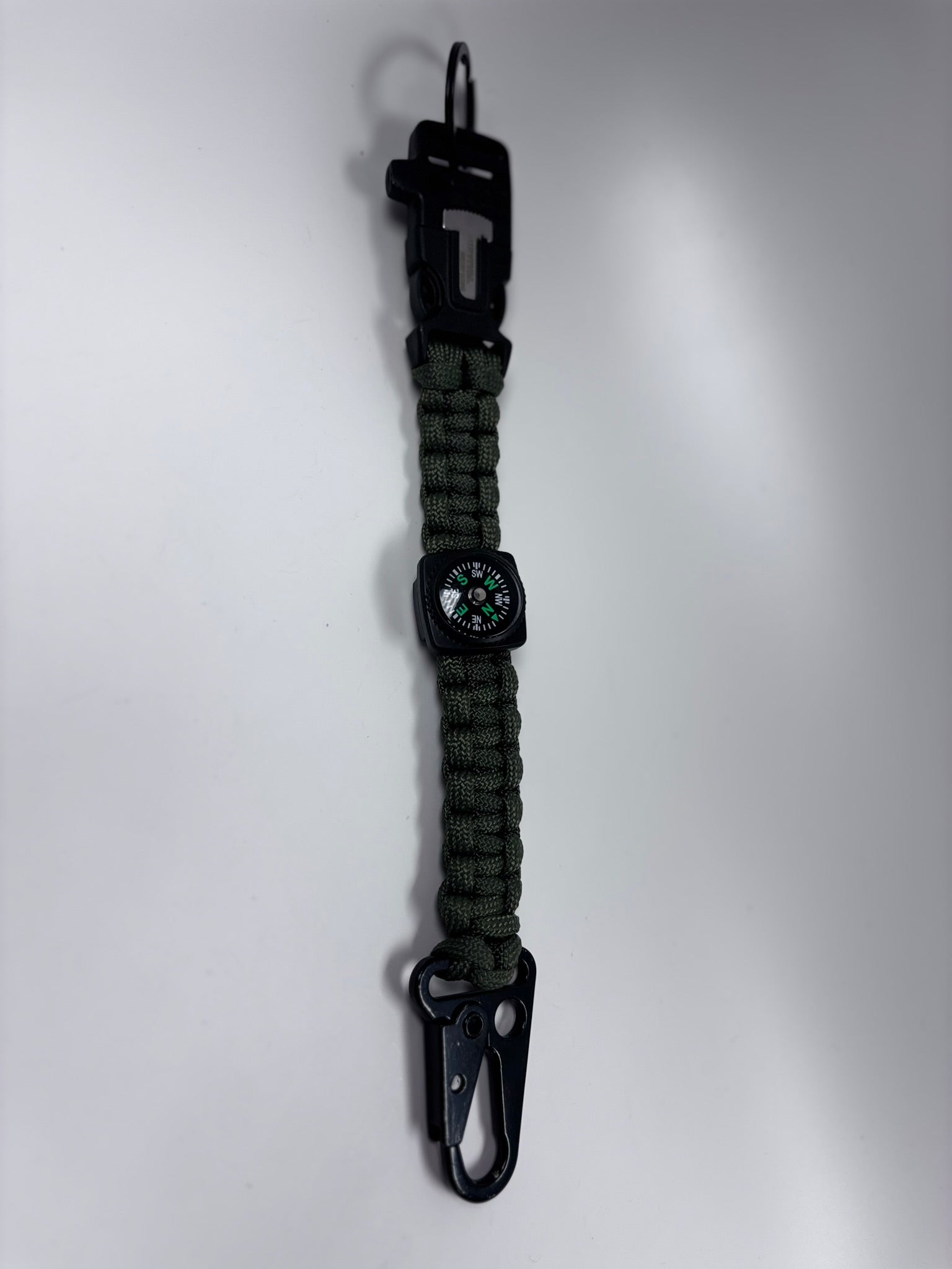 - Fermeture : Mousqueton tactique noir + anneau porte-clés rond noir